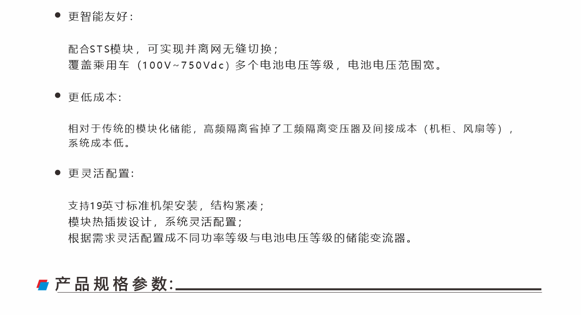 HPCS-75040-200K并離網(wǎng)儲能PCS變流器,用V2G高頻隔離模塊構(gòu)建而成,根據(jù)需求靈活配置成不同功率等級與不同電池電壓,配合STS,可實現(xiàn)并離網(wǎng)無縫切換,確保負載不掉電。