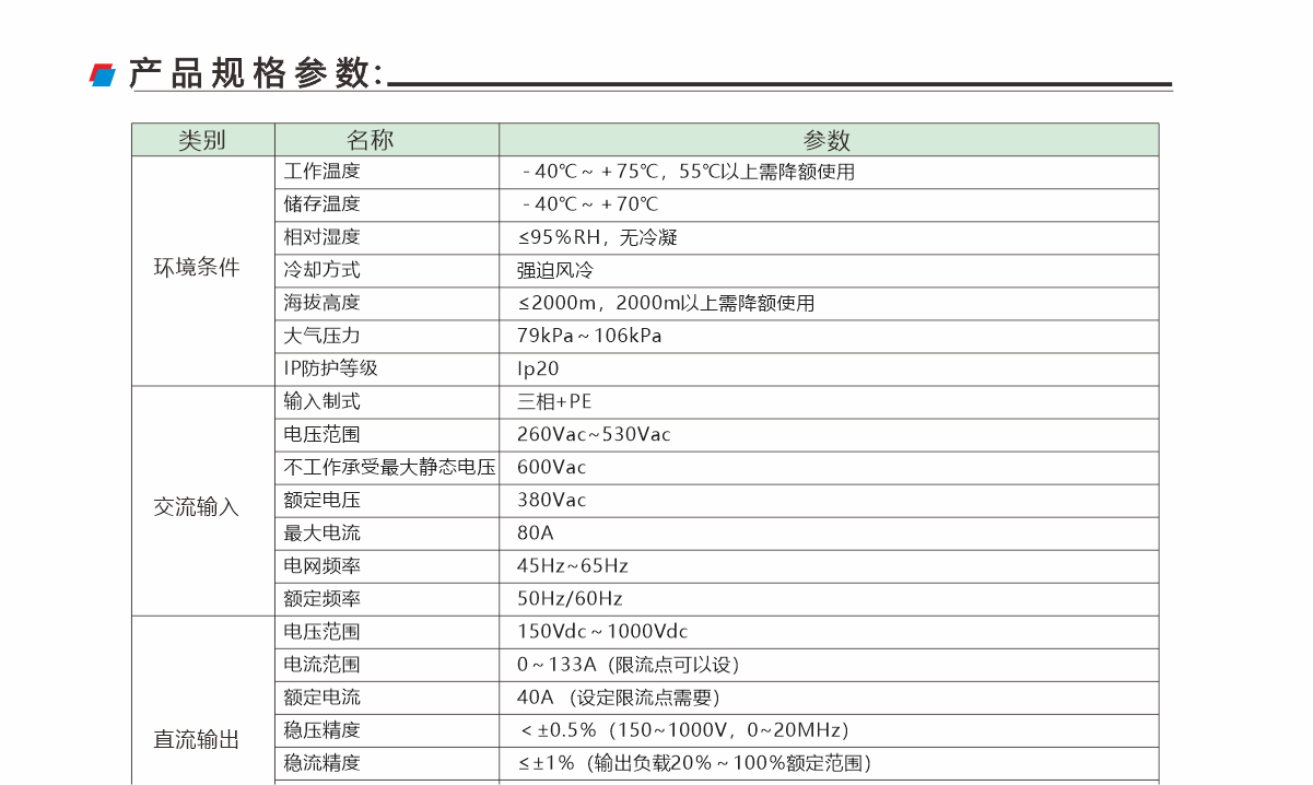 SEG系列模塊是一款高性能的直流充電模塊,主要功能是將電網(wǎng)三相交流輸入整流為直流輸出,為電動車電池提供快速直流充電電流,也可用于為設(shè)備提供穩(wěn)定電壓電流。包括30KW100A1000V和40KW133A。
