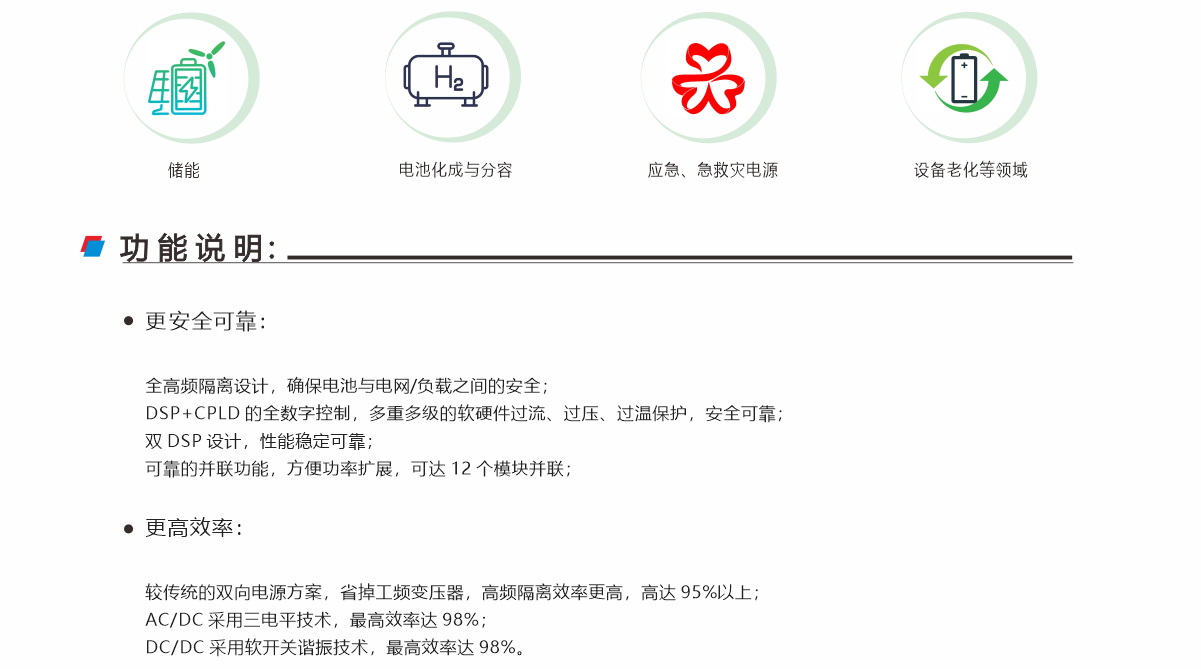 這款儲能變流最大特點是低壓大電流,最低電壓可以支持40V,輸出額定電流100A。 廣泛應(yīng)用于光儲充、充儲,應(yīng)急救災(zāi)電源及設(shè)備老化等諸多領(lǐng)域,是需要能量雙向流動應(yīng)用行業(yè)的首選