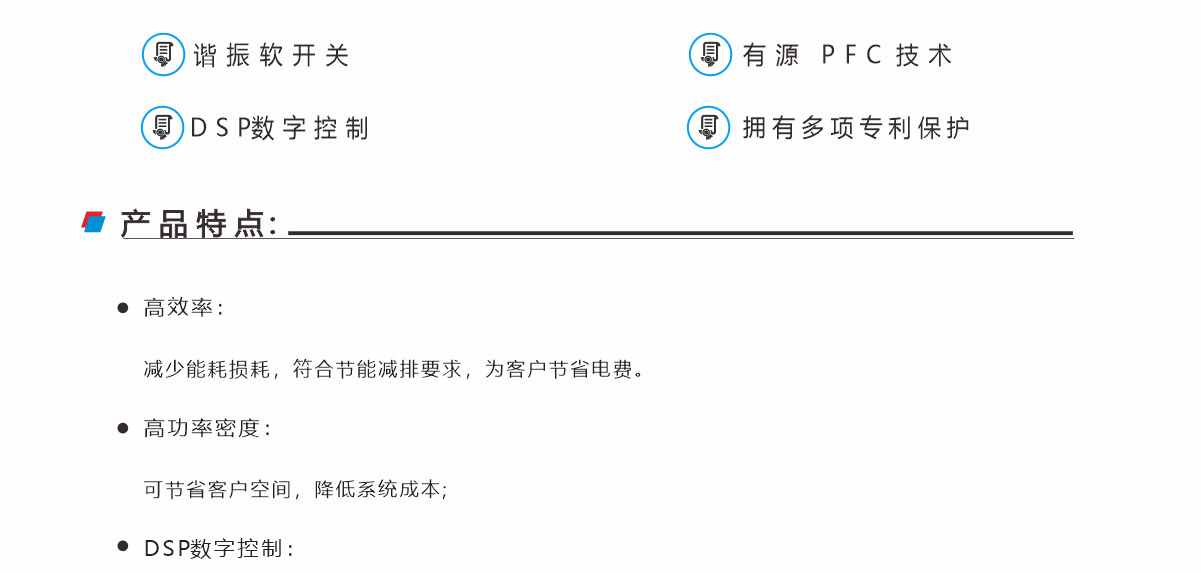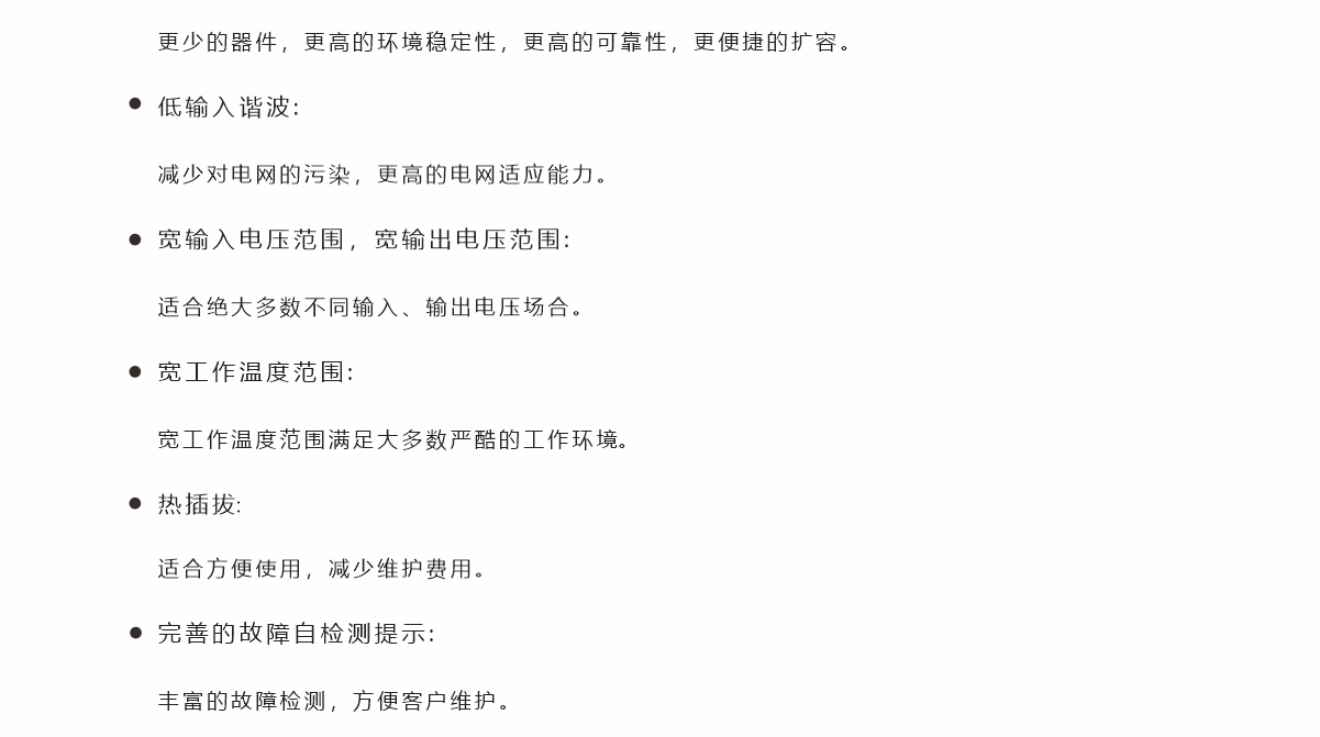 IM48-6KA 系列高頻開關(guān)整流模塊為交流電壓輸入,直流電壓輸出可調(diào)的 ACDC 模塊。模塊具有功 率密度高,功率因數(shù)高,諧波小,效率高等特點,具備多模塊可并聯(lián)性能。