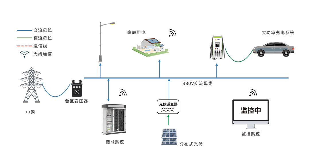 隨著經(jīng)濟(jì)的發(fā)展,配電網(wǎng)負(fù)荷上升,末端低電壓、臺區(qū)重過載等問題已經(jīng)日趨明顯;同時伴隨著大量分布式新能源發(fā)電裝置的接入配電網(wǎng)的電源結(jié)構(gòu)顯著改變,電源的波動,區(qū)域供電質(zhì)量都面臨嚴(yán)峻考驗。臺區(qū)儲能系統(tǒng)能根據(jù)電網(wǎng)運(yùn)行計劃參與電力需求響應(yīng),起到新能源消納、削峰填谷的作用,提高臺區(qū)的供電能力,確保居民可靠用電。