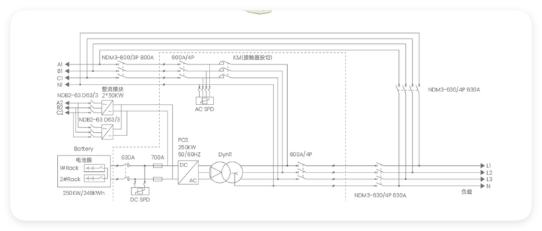 采用3L + N + PE的接線方式。這種接線方式符合電氣安全規(guī)范,保障了系統(tǒng)在運(yùn)行過程中的電氣安全,減少了漏電和短路等安全隱患。
