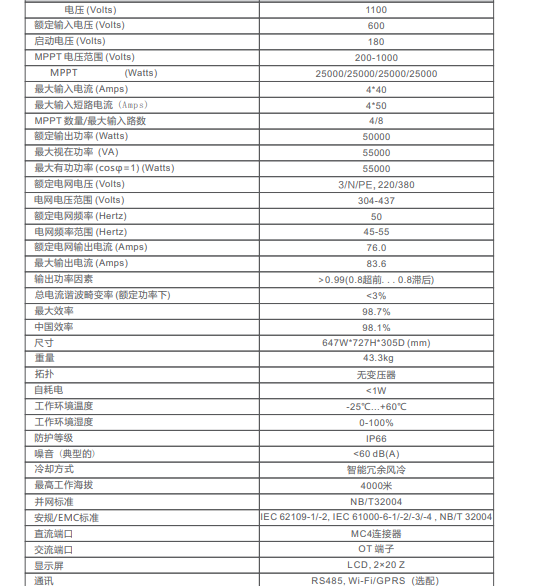 運(yùn)行電壓范圍寬,可兼容市面各種高效大功率光伏組件。無論是單晶硅、多晶硅還是其他新型高效組件,都能與該逆變器完美適配,為用戶提供了更廣泛的組件選擇空間,滿足不同項(xiàng)目需求,實(shí)現(xiàn)更經(jīng)濟(jì)高效的光伏系統(tǒng)配置。